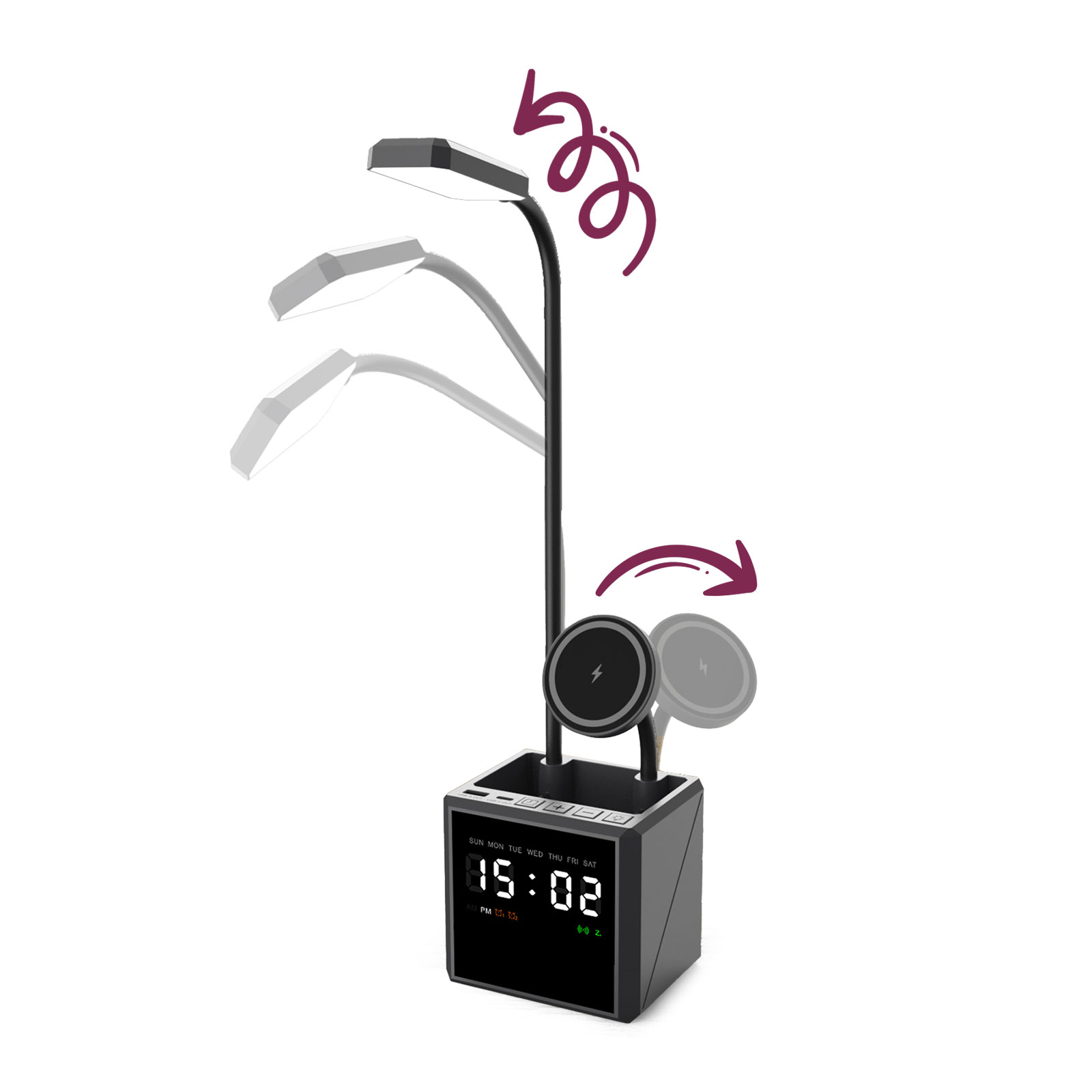 *Kablosuz Şarj *Type-C Giriş: 5V-3A *Type-C - USB Çıkış: 5V-1A *Magsafe Çıkış: 15 W *Kulaklık: 3W *Saat: 2.5W *Manyetik Telefon Standı *Kalemlik *2 Yıl Garanti *Baskı: Lazer